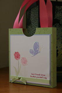 I really enjoy making bags and boxes or anything 3d for that matter. Below are a couple of bags with matching cards. These are great for gift giving. The bags are quite sturdy. They are made from cardstock and covered in designer paper. I am head over heals in love with the "live your dream" stamp set and the "garden whimsy" set will always be a favourite. I think it was one of the first sets I bought.
